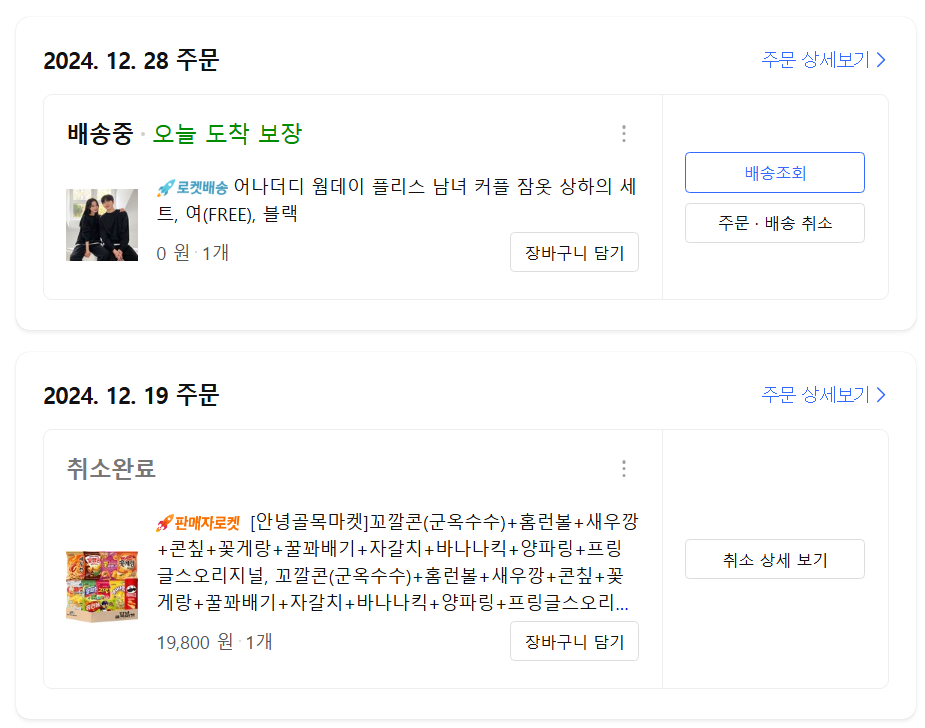 곰곰히 생각해보니 이 쿠팡 계정은 아예 사용을 하지 않아 그런건가 생각하고 구매이력을 만들어보았습니다.