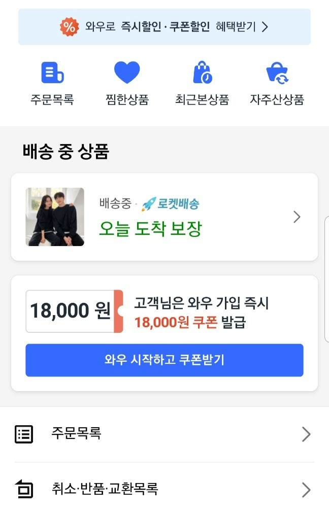 다시 쿠팡앱 - 마이쿠팡으로 들어가보니 와우멤버십 가입시 18000원의 쿠폰을 준다고 합니다.